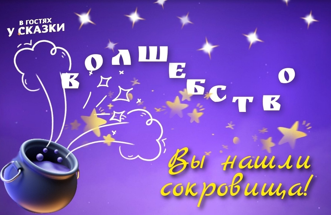 На телеканале «В гостях у сказки» завершилась викторина по поиску сокровищ. Зрителям предлагалось посмотреть фильмы в рубрике «Большое кино» на телеканале и собрать буквы, появляющиеся на всплывающих плашках. Из букв нужно было сложить слово. Это слово «ВОЛШЕБСТВО»!